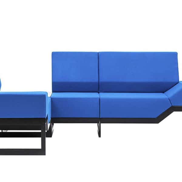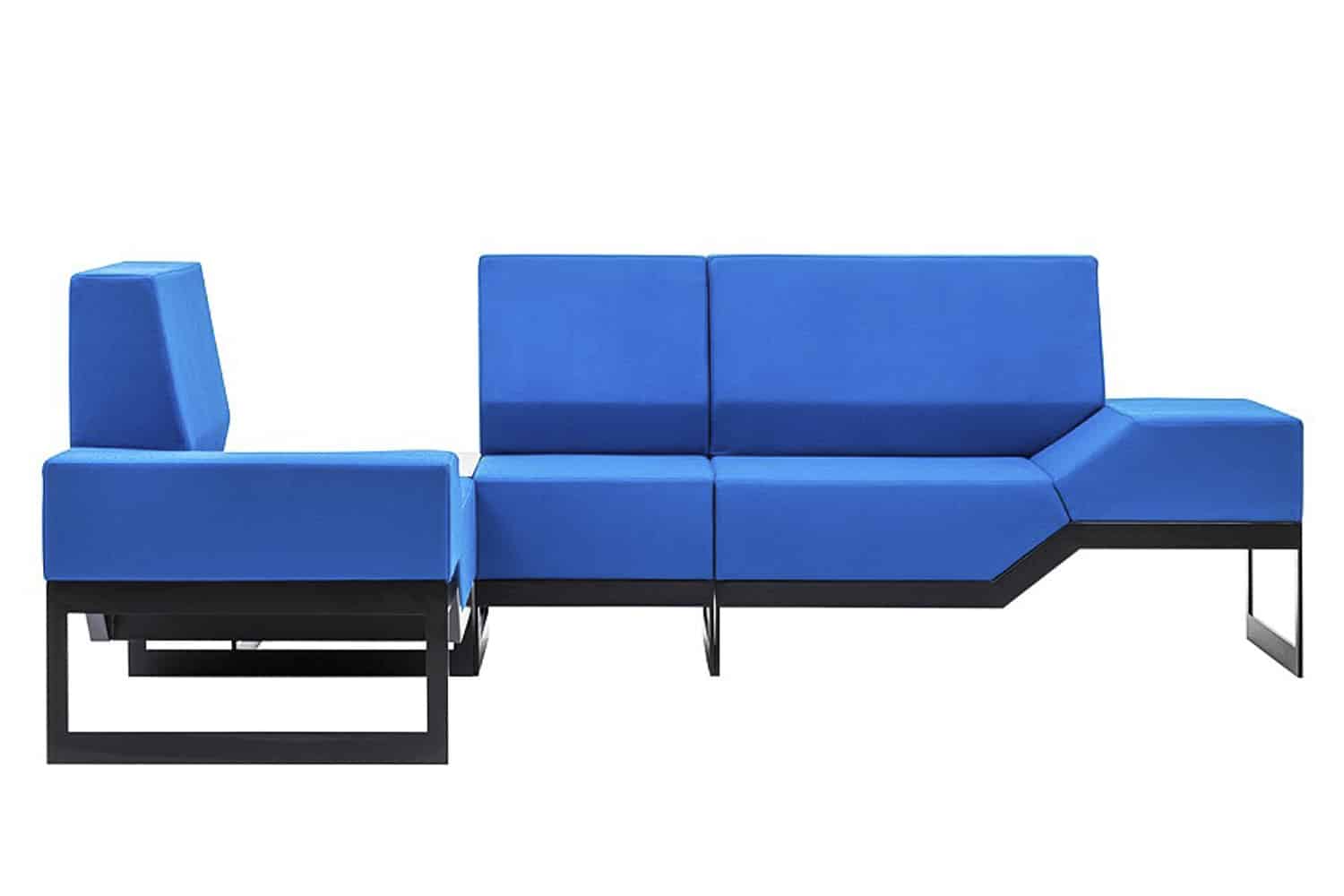 Modulær sofa, fullt polstret, designet for individuell lineær eller hjørnekonfigurasjon.
